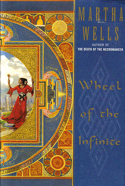 Martha Wells has recently received a lot of attention for her Murderbot novellas (Doreen’s reviews of the first three are here, here, and here), but she has been publishing fantasy and science fiction novels since the early 1990s, snagging a Nebula nomination for The Death of the Necromancer in 1998. Wheel of the Infinite, her fourth novel, was published in 2000.