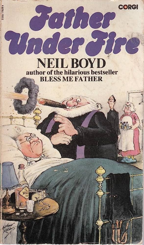 The pillars of St Jude’s populate pages of Father Under Fire just as faithfully as the other books of the series: Father Neil, the young Catholic priest nearing the end of his first full year out of seminary; Father Charles Duddleswell, longstanding priest of the parish, a stickler for rules unless they get in the way of the greater good; Mrs Pring, the housekeeper who appears to get on Duddleswell’s last nerve but is his steadiest supporter; Billy Buzzle, bookmaking neighbor with a keen eye for profitable joint ventures; Dr Donal Daley, boon companion and prodigious drinker of whiskey.