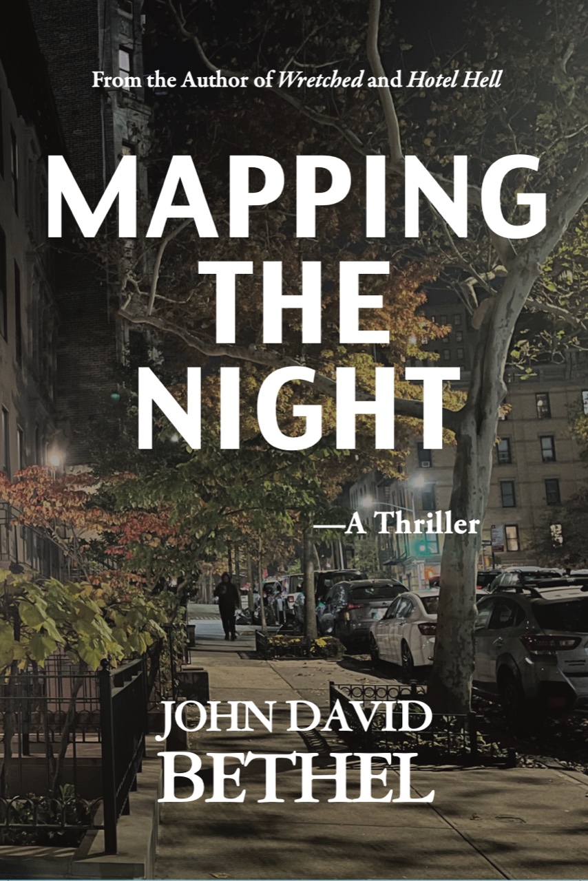 Amazon link is: https://www.amazon.com/Mapping-Night-Thriller-David-Bethel/dp/1955036721/ref=sr_1_1?dib=eyJ2IjoiMSJ9.V3pr9on18uHbBDaRYAbxJaVy05n_2BA5853zNWTcB3ZUzcIaadvHn6Q-LeYWp5yEU3Xgtb_JOKxNWi4y1S5uW1fEcNkT3Z5aB0CnRmQ2gZU5PR7p0R5wZWLliG-jbpOWcrCR0yCeF-WFvUKSGeTg0OOsSa6wHFOVL6EyCA_z43cxR6Zq2iRJjiCleoI8mKBj.4bKVWz-TizrGs8YWqFIQYXfH4f6R4FCtVSct10hUWao&dib_tag=se&qid=1722106462&refinements=p_27%3AJohn+David+Bethel&s=books&sr=1-1