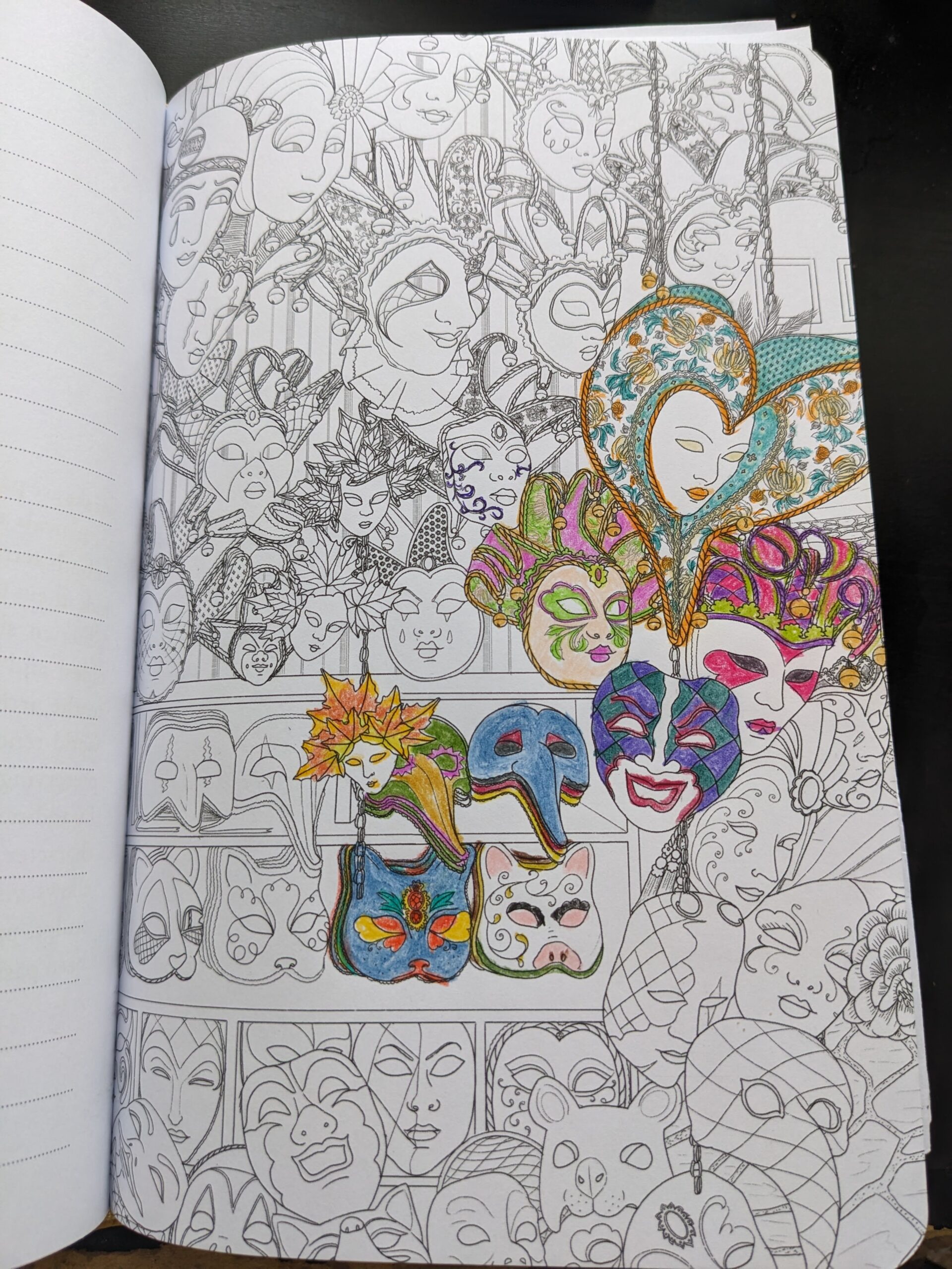 So when I got the chance to review the latest in the Color-Your-Own-Travel Journal series, covering the wonders of The Floating City — oh, holy carp, is that why my #Dungeon23 variant was based on a waterborne city, at least in part? Ahem, I digress — I could not resist. Venice is one of my absolute favorite artistic inspirations. I’m currently working my way through a watercolor notebook inspired by the city, and found this to be the perfect colored pencil accompaniment.