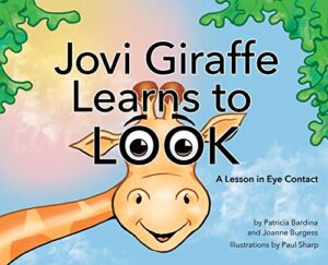 Jovi Giraffe is nice and polite but has trouble making friends. He’ll readily engage in conversation but tends to looks everywhere but into the eyes of the person he’s talking with, leading others to believe that he’s just not that interested in them. Poor Jovi feels quite lonely as he makes his way to the park one day, after his lack of eye contact causes more than one friend to skip away to hang out with people they think actually want to spend time with them.