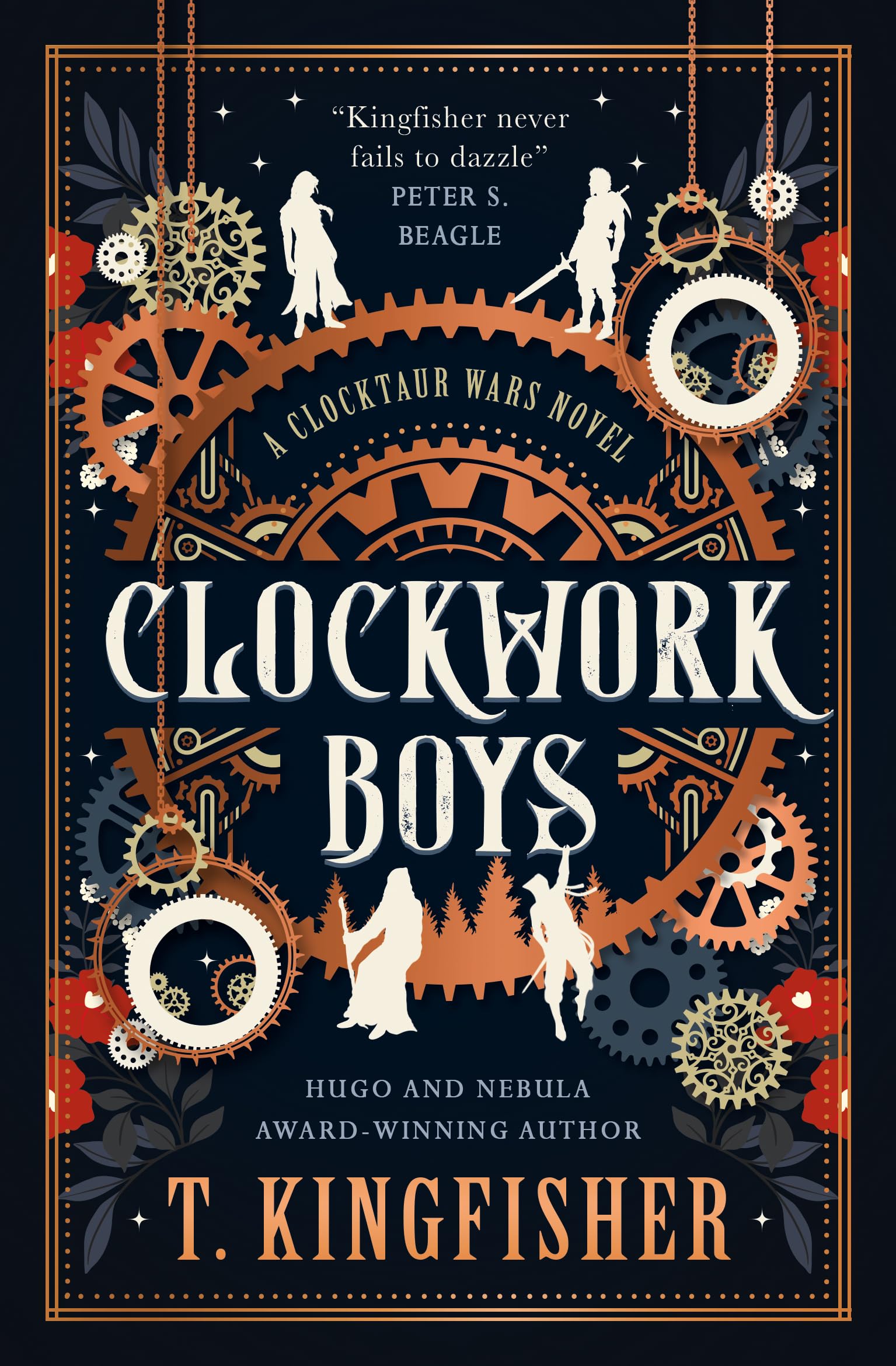 The motley trio will get a little bit of support. “A scholar will accompany you,” [said the Captain]. “He’s made something of a study of arcane machinery—it’s possible that his expertise may help. In theory he has a counterpart in Anuket that should know more, but that other scholar has vanished.” (p. 27) As a setup, the beginning not as elegantly done as Swordheart or Paladin’s Grace, but it gets the story moving, and Clockwork Boys is about 100 pages shorter than Paladin’s Grace and about 150 pages shorter than Swordheart, so Kingfisher has to get the ball rolling quickly.