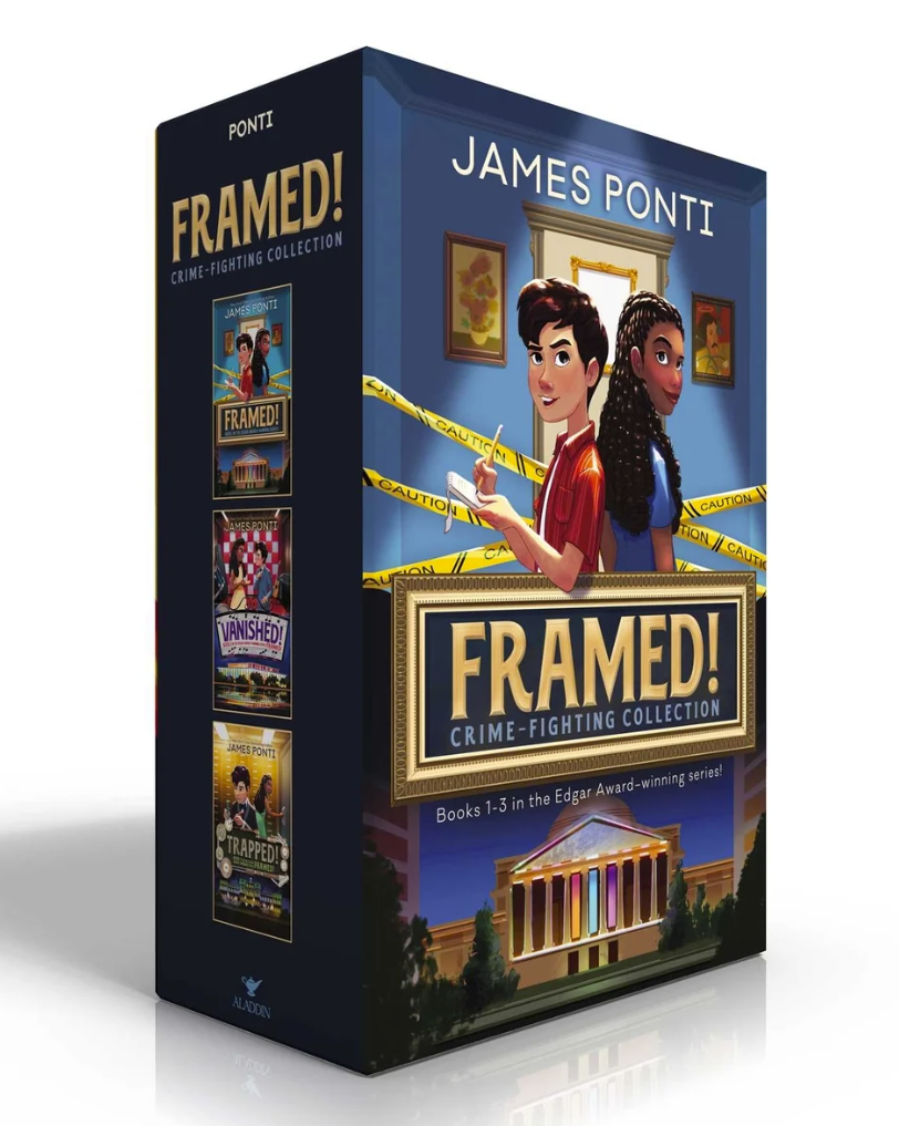 For younger mystery fans, consider James Ponti’s Framed! Crime Fighting Collection. This collectible paperback boxed set includes the first three books of the action-packed series: Framed!, Vanished! and Trapped!, with gorgeous new cover art for all three.